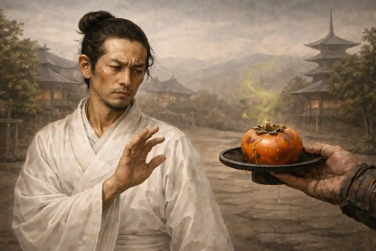 عندما اشتكى Mitsunari من العطش وطلب الماء، قال له أحد الحراس: "لا يوجد ماء، لكن هذه ثمرة كاكي. كلها بدلاً من ذلك".
